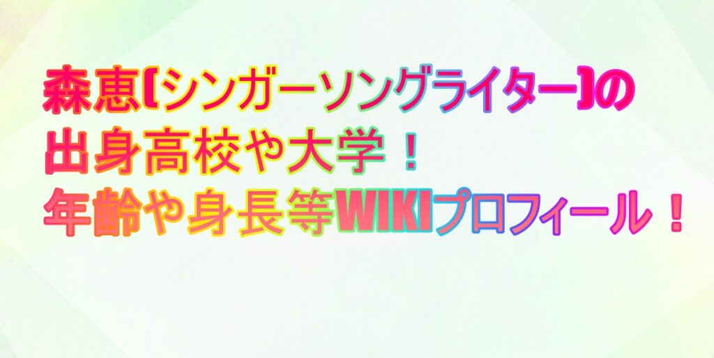森恵(シンガーソングライター)の出身高校や大学!年齢や身長等WIKIプロフィール!